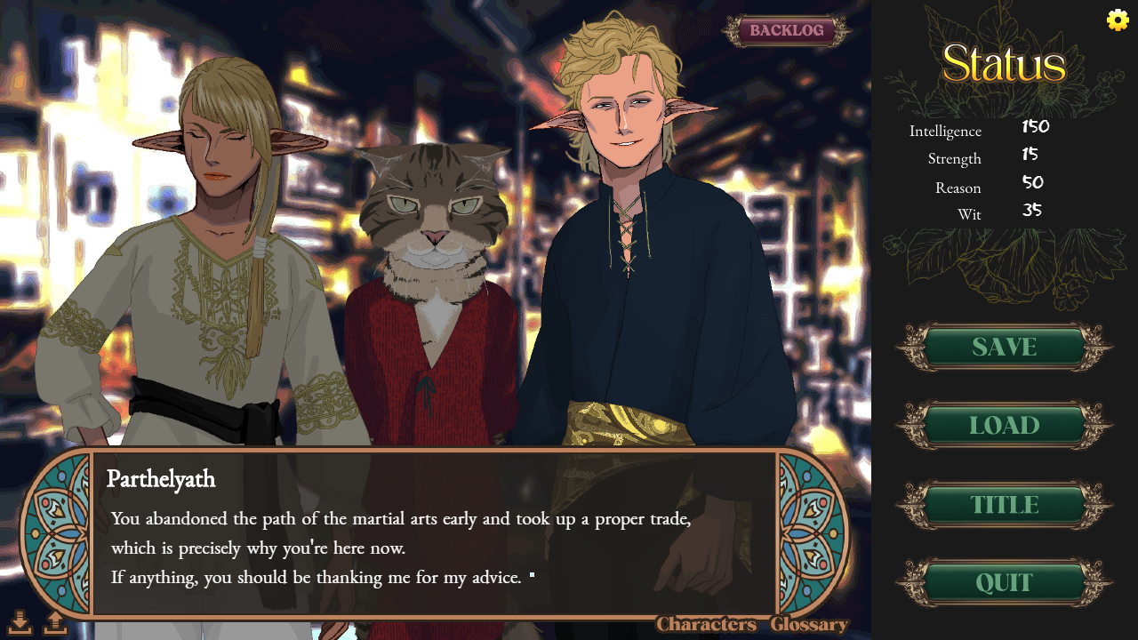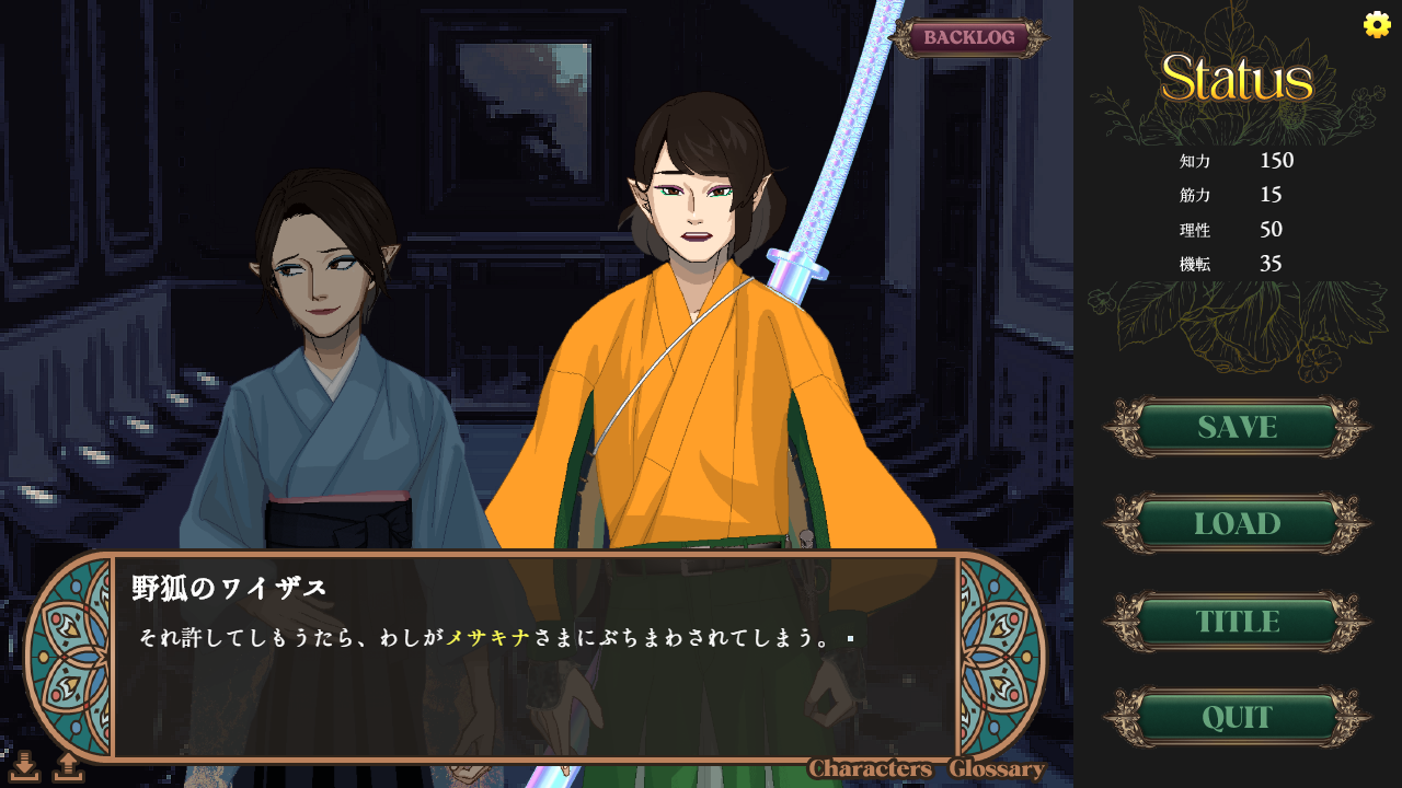 Two new characters will be added in the next update: the eastern elven warrior 'Waizas /wɑɪzæs/' and the orthodox western elf 'Parthelyath /pɑːθelɪəs/'.